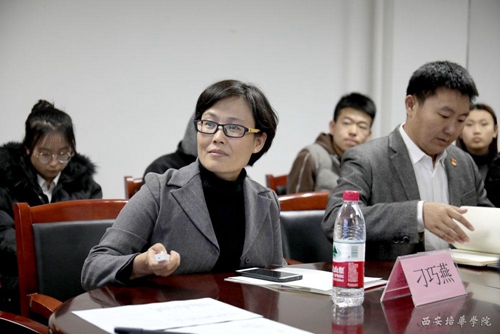 陕西省教育厅网编室主任刁巧燕做交流。(西安培华学院党委宣传部供图)
