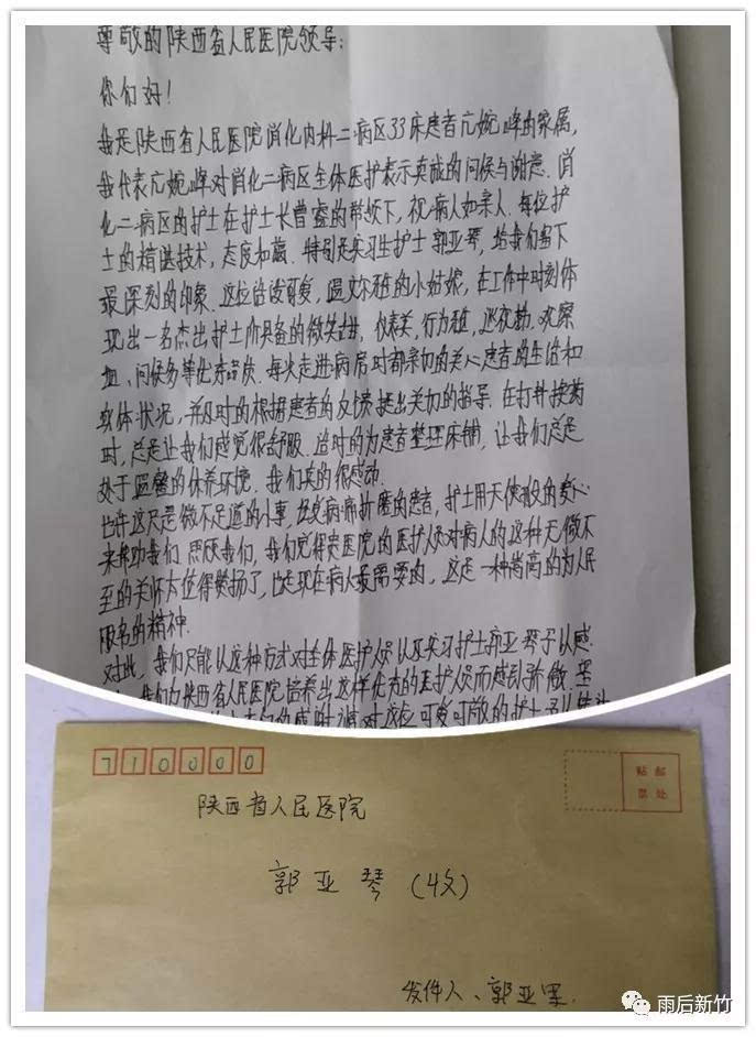 在这之前,也曾有一位患者专门送表扬信给她,对实习护士郭亚琴赞不绝口。