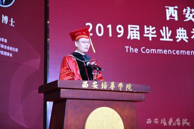 全场瞩目,理事长姜波博士迎来学术权杖;副校长于国亮宣读《西安培华学院关于2019届全日制普通本专科学生毕业(结业)的决定》;学位委员会主席、副校长刘越莲宣读《西安培华学院关于2019届普通高等教育本科毕业生授予学士学位的决定》。