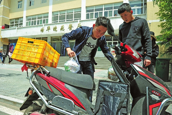 外卖送久了,符琼贵渐渐总结出经验来。符琼贵说,如果同学不是要求立即进餐的话,他会在上午11时50分左右集中取餐,然后根据宿舍区域将餐食进行划分,骑电动车将餐食送往各个宿舍楼,“一般不送上楼,快餐和包裹到达后会联系同学下楼自己来取,节约时间也不违反学校规定。”