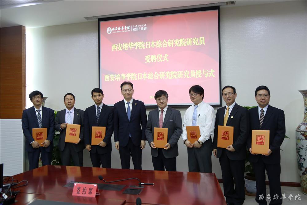日本华侨华人博士协会会长葛宗涛、名誉会长张善俊、名誉会长赵凤济、执行会长张书明、执行会长赵新为、常务副会长杨博、北海道分会会长汪志平受聘为“西安培华学院客座教授”