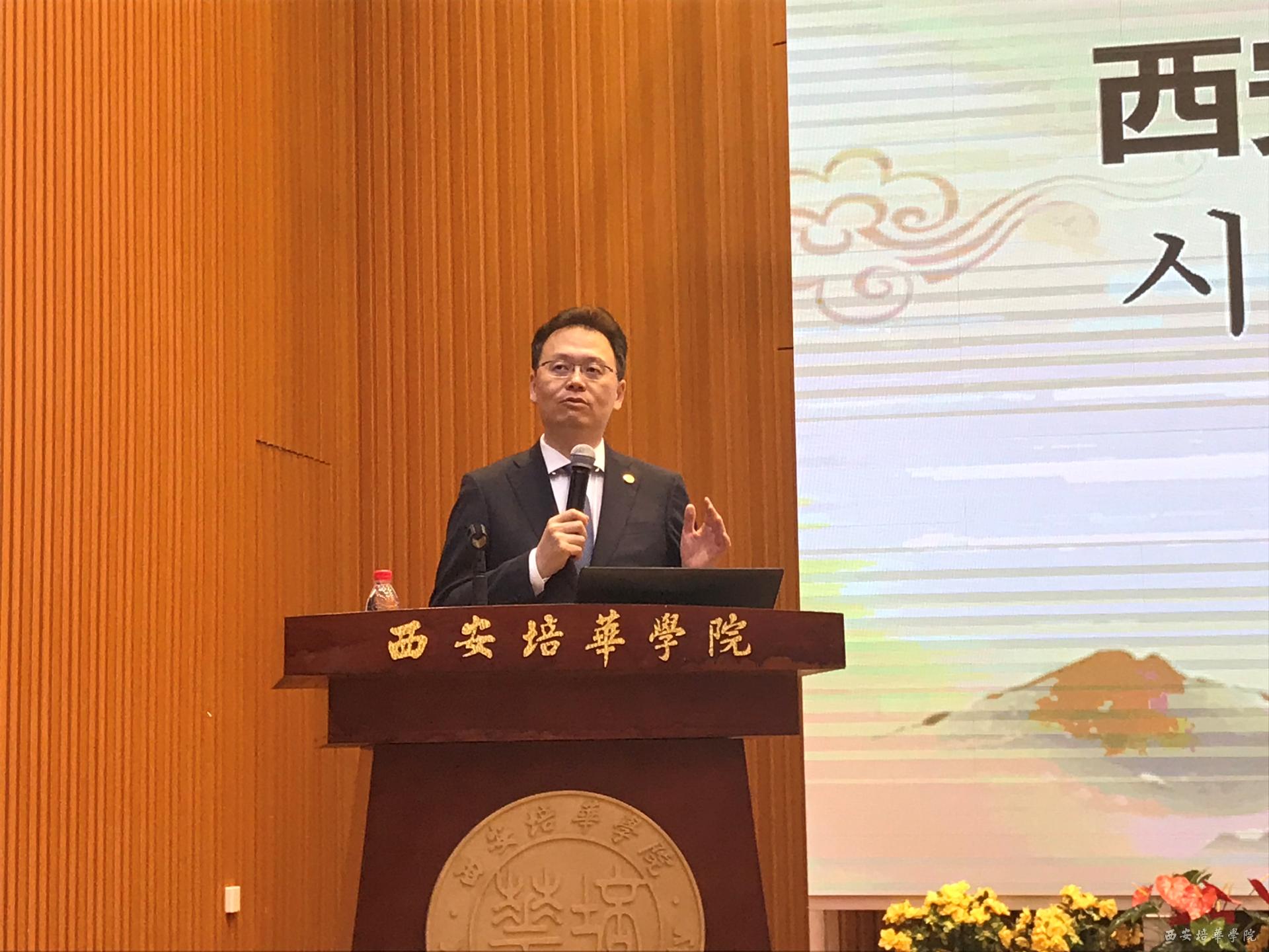 西安培华学院理事长姜波博士应邀致辞,他表示,西安培华学院重视培养学的实践能力和创新能力,希望通过此次活动,加深并激发青年学子对中韩传统服饰文化的理解和热爱,推动青年人传承民族文化瑰宝。
