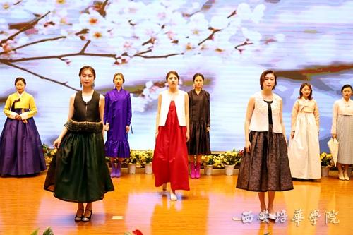 传统服饰与国家源远流长的文化密不可分,中韩两国的服饰文化也反映了两国在历史发展中不同时期的文化变迁,研讨会上,来自西安培华学院各个专业的模特们身着中韩传统服饰进行动态展演,让在场观众充分领略韩传统服饰的魅力。