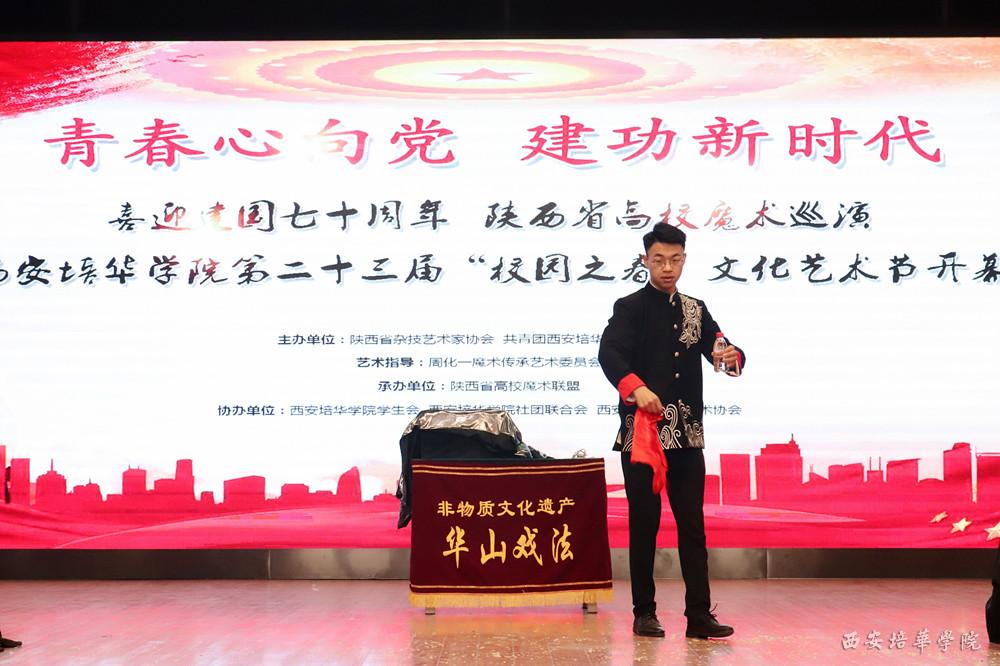启动仪式后由陕西省杂技家协会和共青团西安培华学院委员会主办,周化一魔术艺术传承委员会指导,陕西省高校魔术联盟承办,学校学生会、社团联合会、魔术协会等联合协办的陕西省高校魔术巡演活动也拉开帷幕,来自培华魔术协会和西安科技大学高新学院、西北大学明德学院等兄弟院校的青年魔术爱好者一起为大家献上一场技惊四座的精彩演出。
