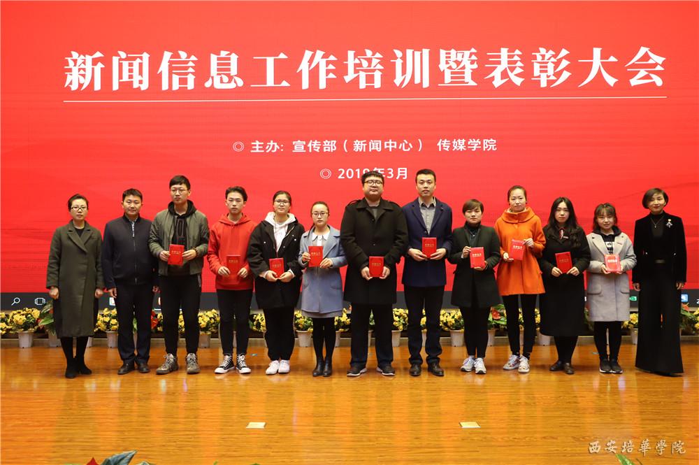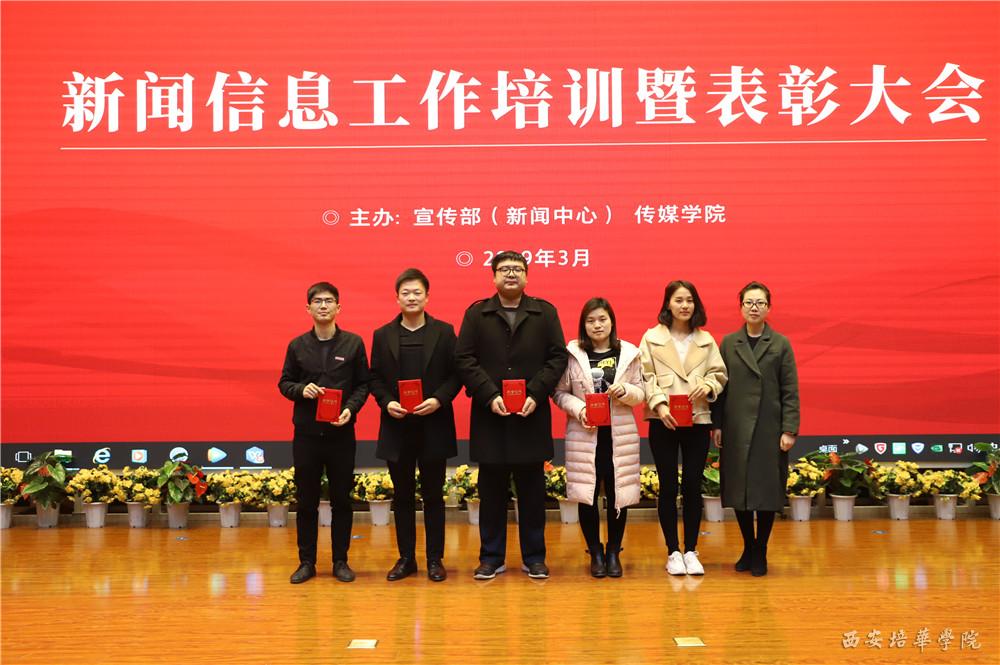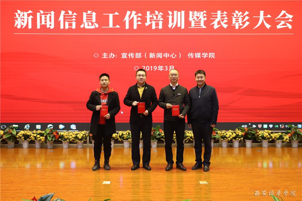 党委副书记、副校长姚文静宣读表彰文件。与会领导为荣获新闻信息工作“先进集体”、“先进工作者”、“优秀信息员”、“培华好新闻”获得者颁发荣誉证书。现场还颁发了一个特殊的奖项“培华2018最具网络影响力奖”,该奖项是在去年年终,新闻中心联合陕西传媒网在校内做了一个最有魅力院系的评选活动,经过网络投票,最终会计与金融学院荣获该项表彰。