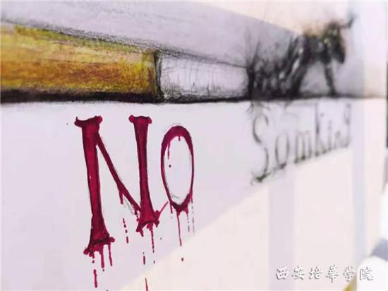 该校利用网站、微博、微信等线上平台宣传《西安市控制吸烟管理办法》,发起《西安培华学院控烟倡议书》,号召全校师生共同努力,为建设“无烟培华、健康培华”贡献力量。此外,该校还组织开展了“戒烟主题手抄报展”活动,该校建筑与艺术设计学院师生手绘50余幅主题宣传海报,在学校人群密集的广场展出,号召广大师生珍爱健康,远离香烟。