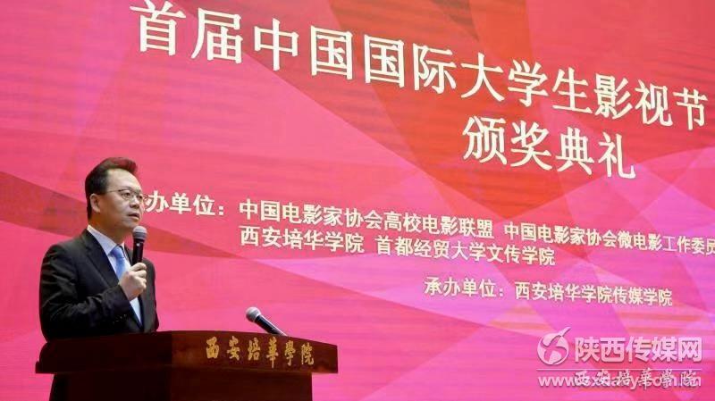10月23日上午,由中国电影家协会高校电影联盟、中国电影家协会微电影工作委员会、中国国际教育电视台、西安培华学院、首都经贸大学文传学院联合主办的首届“中国国际大学生影视节·长安季”颁奖盛典在西安培华学院图书馆报告隆重举行。