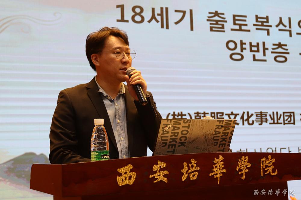 在随后进行的专家主题宣讲环节,韩服文化事业团朴民在代表作了以“鉴赏18世纪出土的两班服饰”为主题的报告。韩国成均馆大学赵又玄教授作了以“申润福和金洪道的风俗画-18世纪士大夫和妓女服饰”为主题的报告。西安培华学院李媛教授作了以“明朝时期服饰特点-汉族服饰的艳丽余晖”为主题的报告。西安培华学院牛菲教授作了以“明代传统服饰形象在当代影视剧中的再造研究”为主题的报告。专家教授们通过图片解析、实物展示等方式,从不同角度入手,全面深刻解析了不同历史时期传统服饰特点,带领在场观众充分领悟中韩传统服饰的魅力。