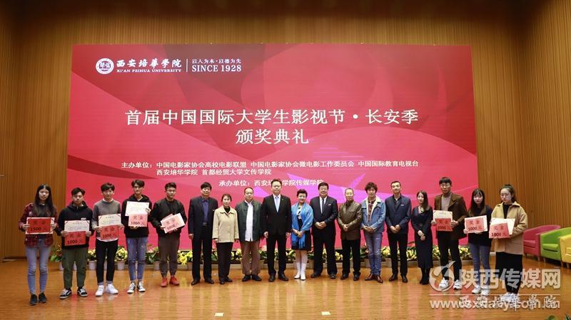10月23日上午,由中国电影家协会高校电影联盟、中国电影家协会微电影工作委员会、中国国际教育电视台、西安培华学院、首都经贸大学文传学院联合主办的首届“中国国际大学生影视节·长安季”颁奖盛典在西安培华学院图书馆报告隆重举行。