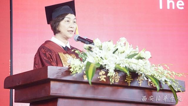 学位委员会主席、副校长刘越莲宣读《西安培华学院关于2018届普通高等教育本科毕业生授予学士学位的决定》。