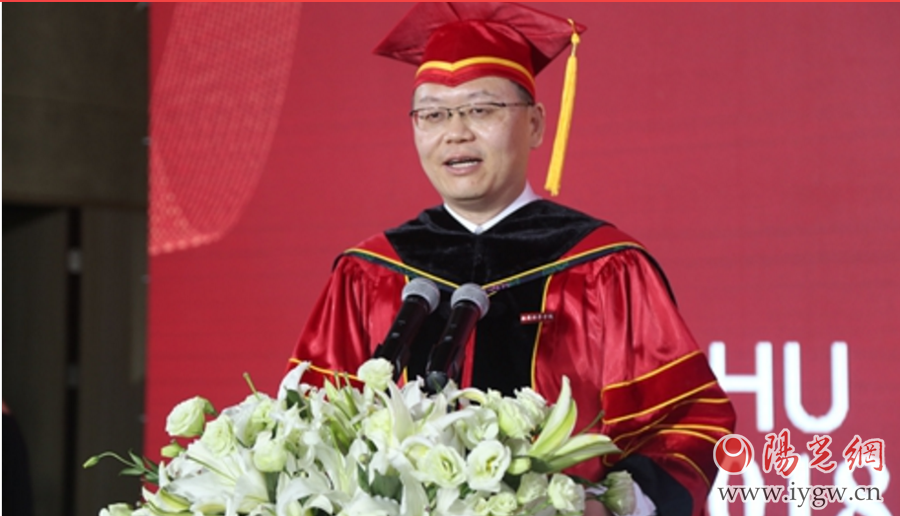 党委副书记、副校长姚文静宣读校级优秀毕业生表彰决定,并为优秀毕业生代表颁奖。理事长姜波博士携校领导、学位委员会委员恭送权杖,观众席间就座。