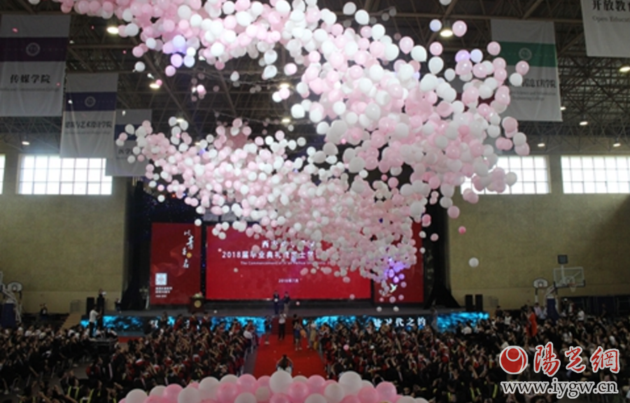 最后,五棵松体育场上空盘旋了一万个彩色气球,寓意广大毕业学子,海阔凭鱼跃,天高任鸟飞。至此,西安培华学院2018届毕业典礼暨学位授予仪式圆满结束。