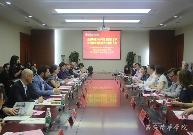 2018年6月26日上午,2018年欧盟官员来华研修代表团一行到西安培华学院交流访问,该院理事长姜波、副院长刘越莲等热情接待了来宾一行,并陪同参观座谈。