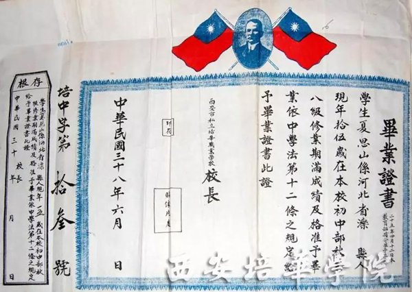 1949年(民国38年)的培华毕业证