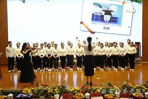 雷孟颖祎老师为班级同学演唱班歌伴奏