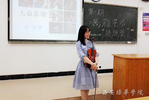雷孟颖祎老师把自己擅长的小提琴曲目带进班会,教同学们如何进行音乐鉴赏