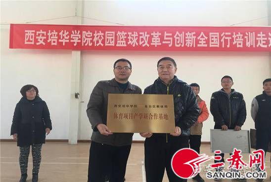 “西安培华学院金台区教体局体育项目产学研基地”挂牌仪式在宝鸡市新福园中学体育馆举行,金台区教体局纪工委书记王利军和金台区新福园小学、西街小学院长及部分师生代表参加了仪式。徐国富代表学院为金台区教体局授牌,标志着“西安培华学院金台区教体局体育项目产学研基地”正式成立。