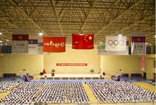 9月15日下午,西安培华学院2017级新生体育入学教育暨阳光体育迎新晚会在五棵松体育馆举办,西安培华学院各体育项目俱乐部分别带来了啦啦操表演、跆拳道表演、体育舞蹈表演、太极拳表演等。精彩的迎新节目轮番上演,表演充满大学的活力范儿,彰显出运动魅力。新生体育入学教育暨阳光体育迎新晚会已经连续五年举办,入学体育教育专门为所有新生解读培华精神,讲解培华体育课的要求,以此来激发学生锻炼的热情,现已成为我校入学教育的突出特色。