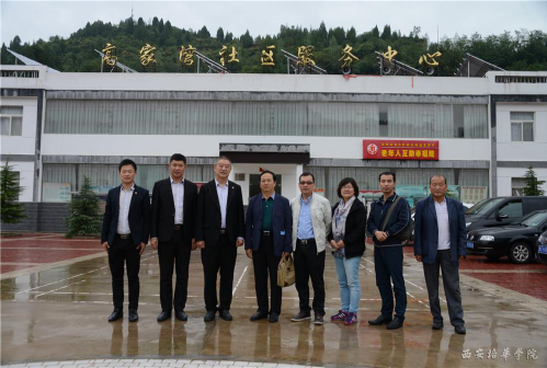 扶贫团一行在西安培华学院捐赠的便民服务中心前合影