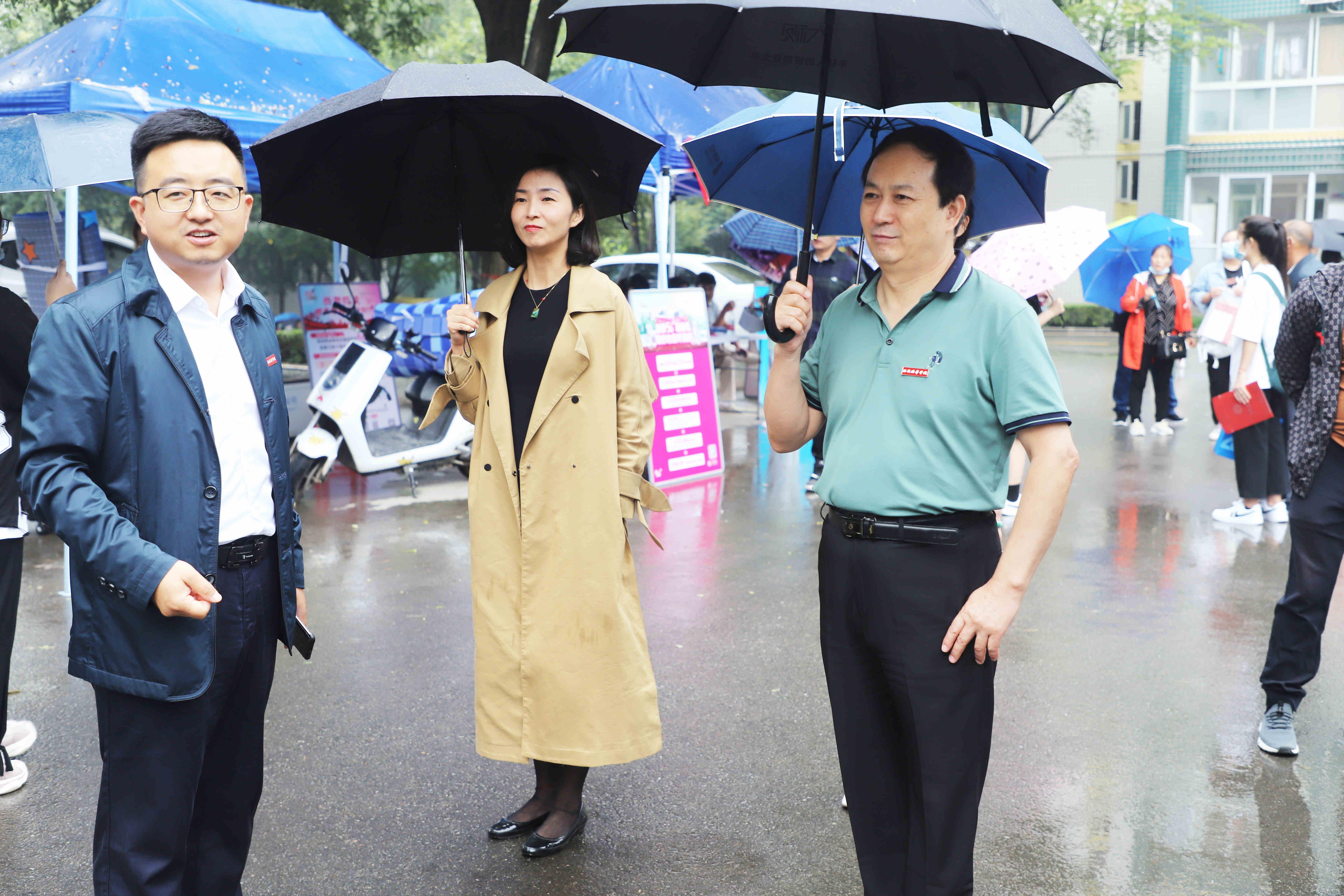 为深入了解学校迎新工作开展情况,更好提升学校迎新服务质量水平,9月20日,西安培华学院理事长姜波、常务副校长胡俊生、副校长姚文静、副校长于国亮、党委副书记、工会主席徐国富等校领导,冒雨对学校迎新活动展开视察指导。校导领依次走访了学校东门各二级学院迎新点、沁园餐厅、体育馆、五棵松红运动广场等地,亲切慰问了现场工作人员和志愿者,并与新生及新生家长展开交流。