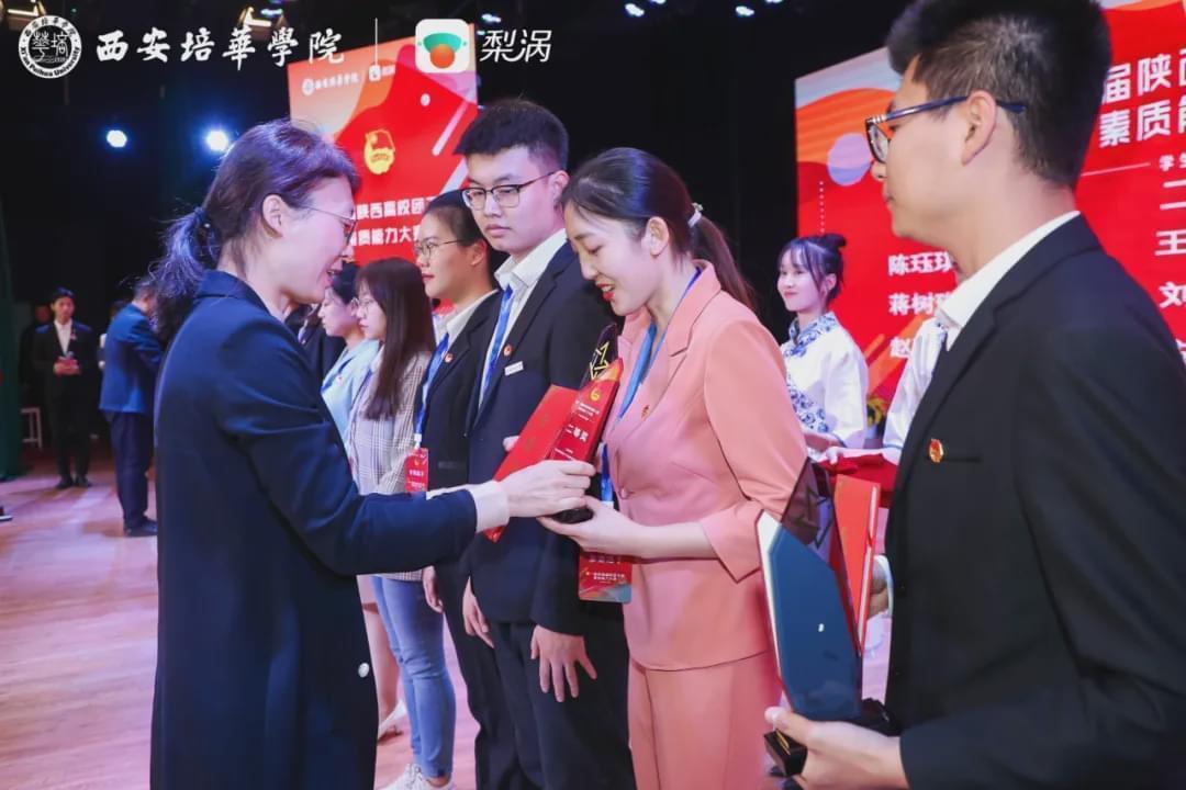 团陕西省委副书记徐永胜,西安培华学院党委副书记、副校长姚文静为一等奖获得者颁奖