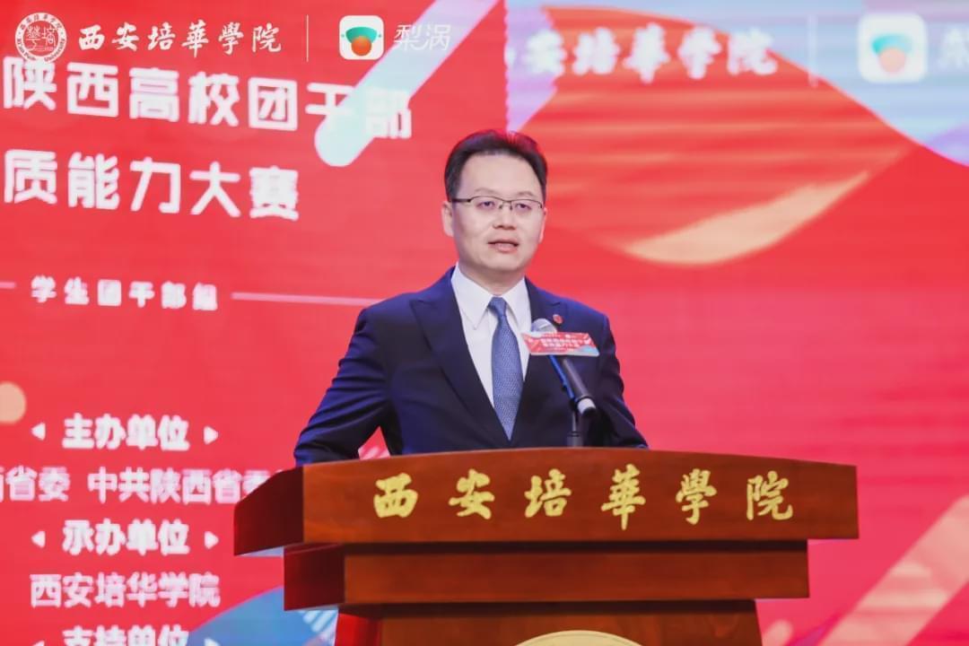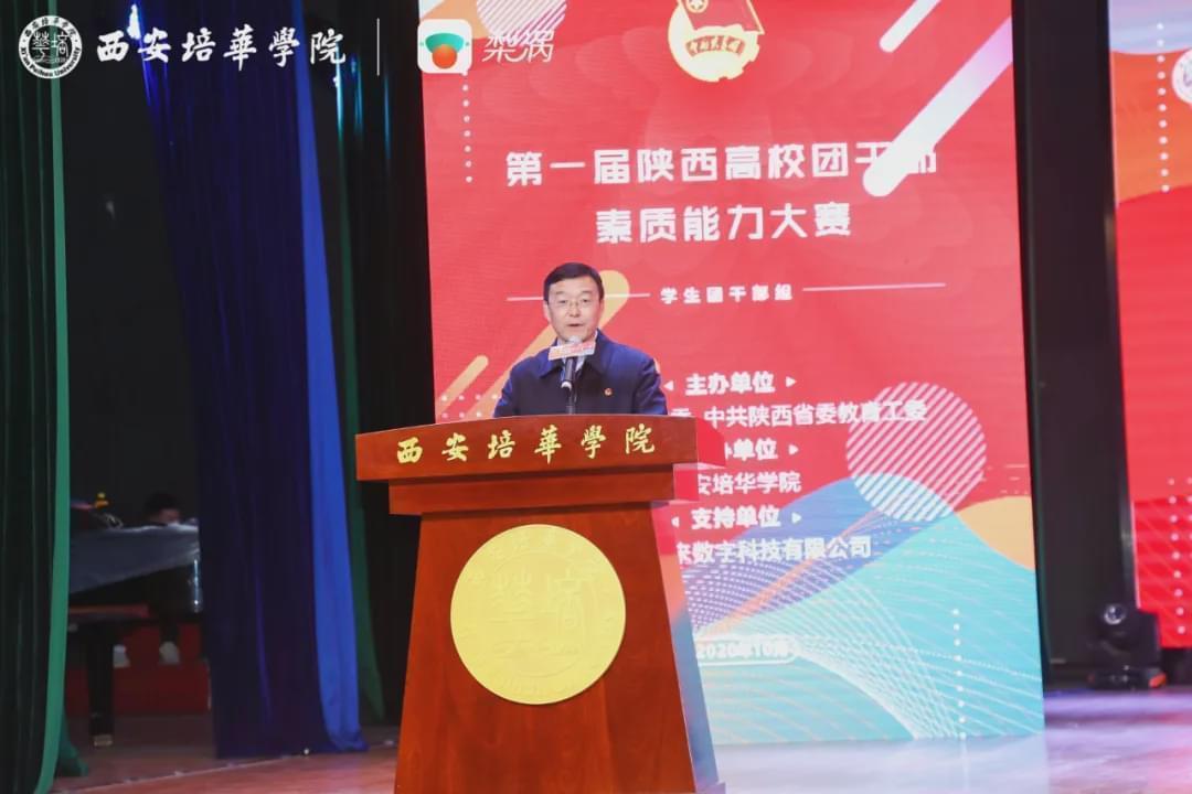 10月31日-11月1日,由团陕西省委、陕西省委教育工委共同举办的第一届陕西高校团干部素质能力大赛(学生团干部组)比赛决赛在西安培华学院长安校区成功举办。共青团陕西省委书记段小龙,共青团陕西省委副书记徐永胜,共青团陕西省委学校部部长郝鹏涛,省委教育工委学工部副部长、团工委书记刘万斌,省文明办思想道德教育处副处长储杰,团省委学校部二级调研员李红斌,京东未来政企合作高级经理马健,陕西省青联副主席、西安培华学院理事长姜波,西安培华学院党委副书记、副校长姚文静等出席颁奖仪式。