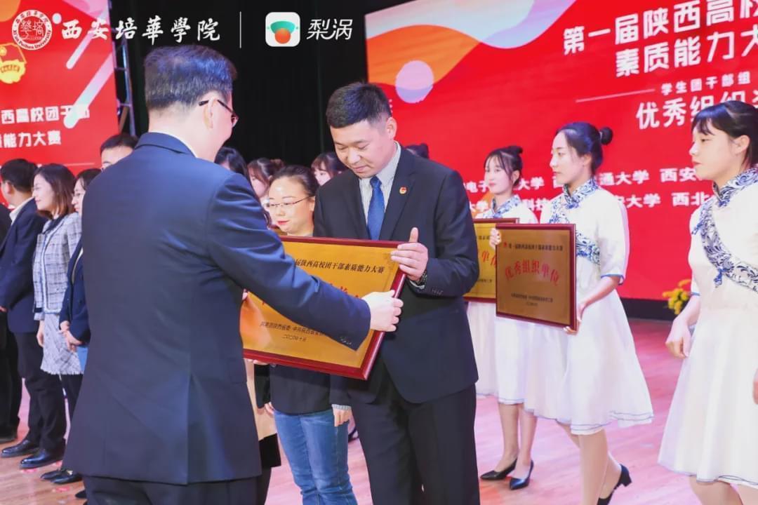 团陕西省委书记段小龙,陕西省青联副主席、西安培华学院理事长姜波为优秀组织单位颁奖