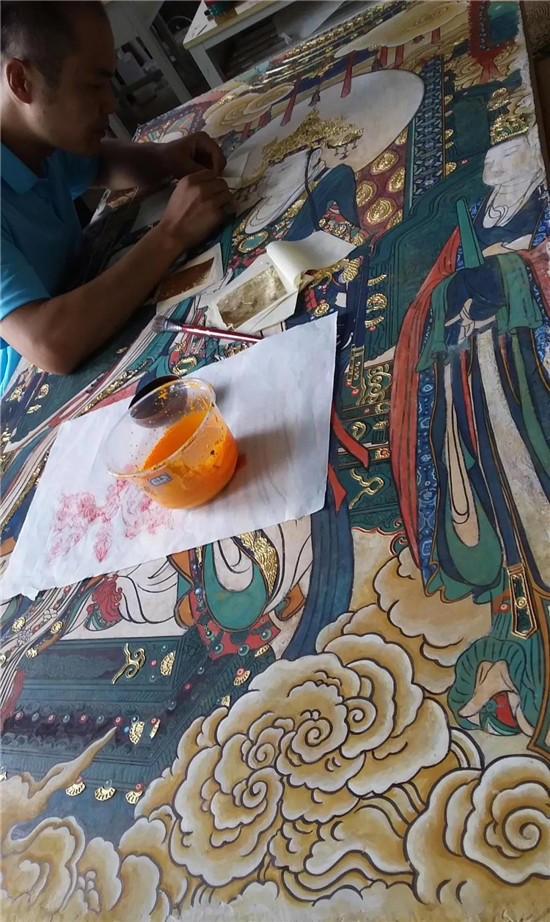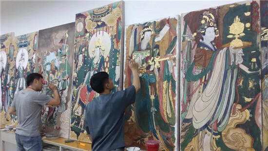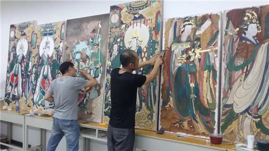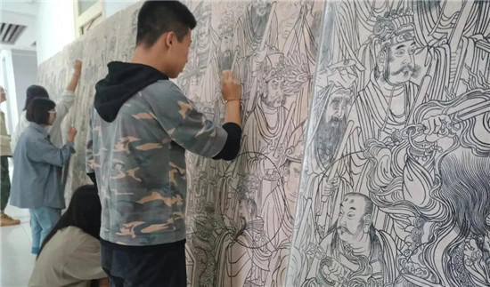 图/张钦老师带领学生完成的永乐宫壁画(部分)