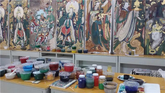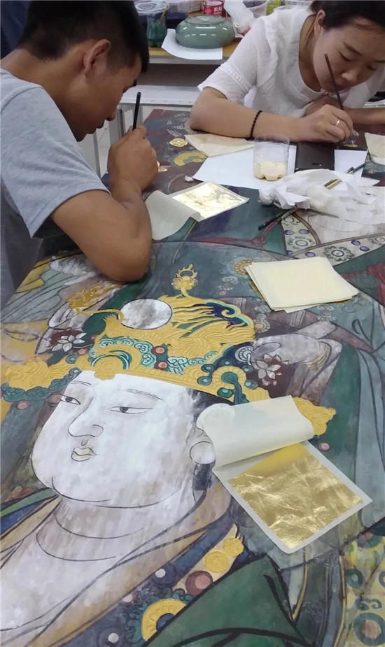 看到传统教学局限性的张钦老师,以双向互动教学模式,适应市场发展需要,培养具有综合素质的创新型人才。张钦老师的壁画工作室,注重学生实地调研,通过组织学生到山西芮城永乐宫、稷山青龙寺、洪洞广胜寺、新绛稷益庙、天水麦积山石窟等地采风,充分激发学生积极性和主动性。张钦老师表示,授人以鱼不如授人以渔,实现“会学会用”、“会教会带”也是壁画工作室的教学目的。