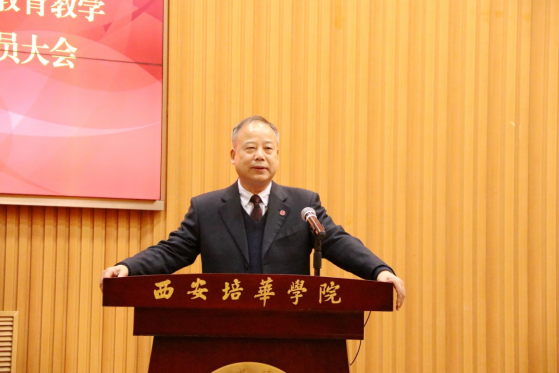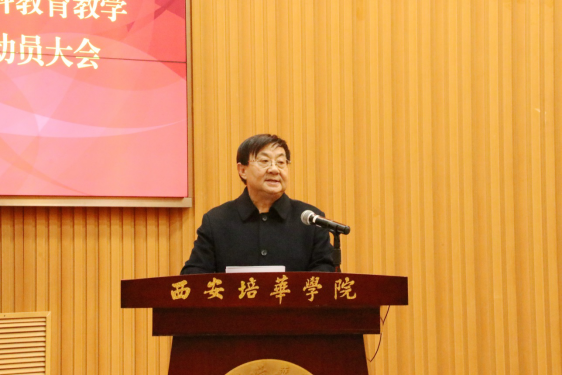 校长李映方作动员讲话。他指出,学校发展已经站在了新的历史起点上,正处在跨越式发展的关键期,全校上下要凝心聚力,务实笃行,为建设推进本科教育高质量发展而努力。针对评建工作,他提出明确要求:一是统一思想,认真学习把握审核评估精神实质。二是从师德师风、教学管理、学生管理、工作作风等方面扎实做好学校审核评估工作。三是要树立全局意识,强化责任落实,处理好学校顶层设计与评建工作的关系,多规合一、一张蓝图。李校长强调,当前和今后一个时期,是我校全面开启高水平民办大学建设新征程的关键时期,希望各单位以勇于担当的责任感和使命感,将审核评估各项目标任务落到实处,写好“十四五”开官之笔。