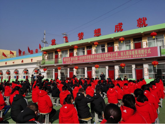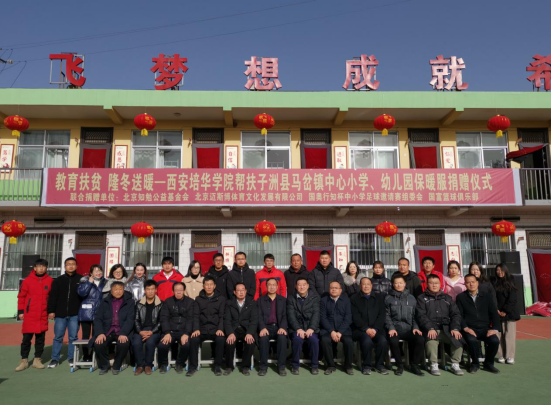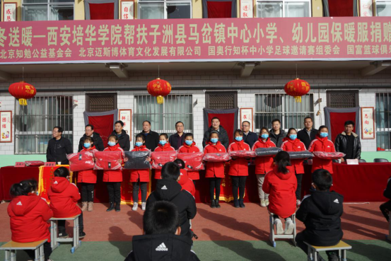 1月12日,隆冬的陕北天寒地冻,但子洲县马岔镇中心小学的校园却温暖无比,这里举行了一场特殊的捐赠仪式:西安培华学院联合北京迈斯博体育文化发展有限公司、国奥行知杯中小学足球邀请赛组委会、北京知勉公益基金会、国富篮球俱乐部为全体师生捐赠340套知名品牌羽绒服。