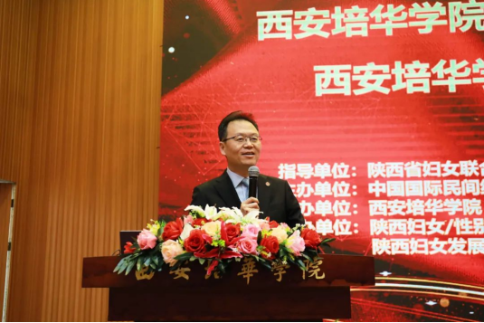 西安培华学院理事长姜波博士在大会上讲话。他指出,培华是一所历史悠久、具有女性教育传统和基因的民办高校,学校历经了93年风雨历程,并于1938年4月成立第一个中共党支部,为开展女性教育和助力中国女性教育发展做出了积极贡献。学校长期致力于女性教育,从女性教育研究到社会公益服务,从女大学生创新创业、就业指导、素质提升等一系列工作入手,提升女性技能,维护女性权益,提升女性地位,打造了女性教育品牌。