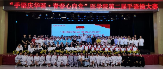为庆祝建党100周年、提高心理育人质量,着力培育广大师生理性平和、积极向上的健康心态,6月1日晚,学校医学院潜能辅导站主办的“手语庆华诞 青春心向党”第二届手语操大赛在大学生活动中心举办。学校医学院党委书记兼行政副院长王平安、医学院党委副书记何丽及医学院师生代表共200人参加。