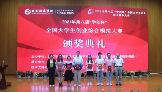大赛在维之图书馆报告厅举行了赛事颁奖典礼。西安培华学院、陕西职业技术学院、西安建筑科技大学等8所高校获得优秀组织奖。陕西国际商贸学院、西安财经大学、西安交通大学城市学院等高校的8支代表队获得主体赛本科组特等奖;西安建筑科技大学、陕西国际商贸学院、陕西科技大学等高校的14支代表队获得主体赛本科组一等奖;西安培华学院、西安信息职业大学、西北农林科技大学等高校的20支代表队获得主体赛本科组二等奖;西安信息职业大学、西安外事学院等高校的3支代表队获得主体赛专科组特等奖;西安培华学院、陕西职业技术学院、西安航空学院等高校的5支代表队获得主体赛专科组一等奖;西安外事学院、西京学院、西安职业技术学院等高校的7支代表队获得主体赛专科组三等奖;西安邮电大学、西安建筑科技大学、陕西科技大学等高校的6支代表队获得专项赛特等奖;西安工程大学、西北政法大学、西安外国语大学等高校的12支代表队获得专项赛一等奖;西安交通大学城市学院、西安工程大学、西安航空学院等高校的18支代表队获得专项赛二等奖。