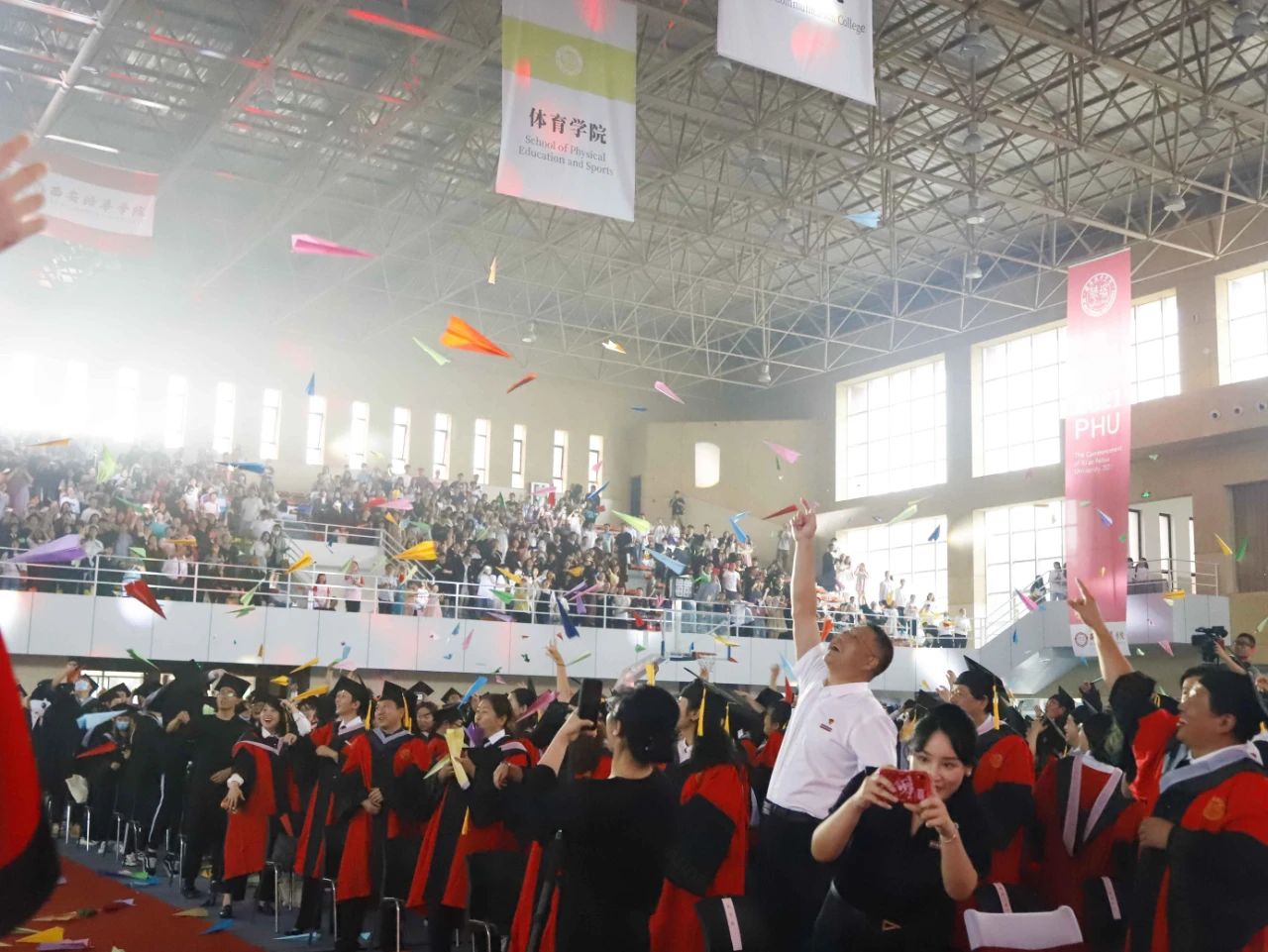 来时青春年少,去时繁花似锦。7月10日上午,西安培华学院在体育馆举行2021届毕业典礼暨学位授予仪式。全体校级领导、学位委员会委员、全体中层领导、教师代表、辅导员代表、毕业生家长代表、校友代表、2021届毕业生代表三千余人参加。