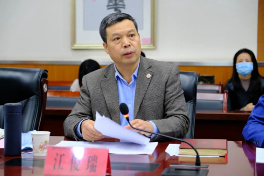 传媒学院党委书记、行政副院长江俊瑞介绍国家奖学金候选人情况