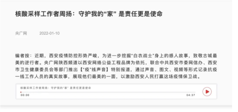 在《“疫”线声音》特别报道中,培华学子用自己的声音,讲述抗疫一线工作者的真实故事,传递力量、展现真情。在这场没有硝烟的战斗中,培华学子积极投“声”,抗击疫情,用艺术的方式,表达抗疫的决心与信念!