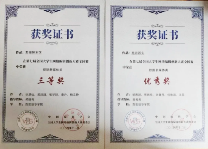 在第七届全国大学生网络编辑创新大赛中,培华学子成绩斐然,共荣获20项荣誉,其中国家级三等奖1项、优秀奖1项,陕西青海赛区一等奖2项、二等奖5项、三等奖7项、优秀奖3项以及单项奖1项。