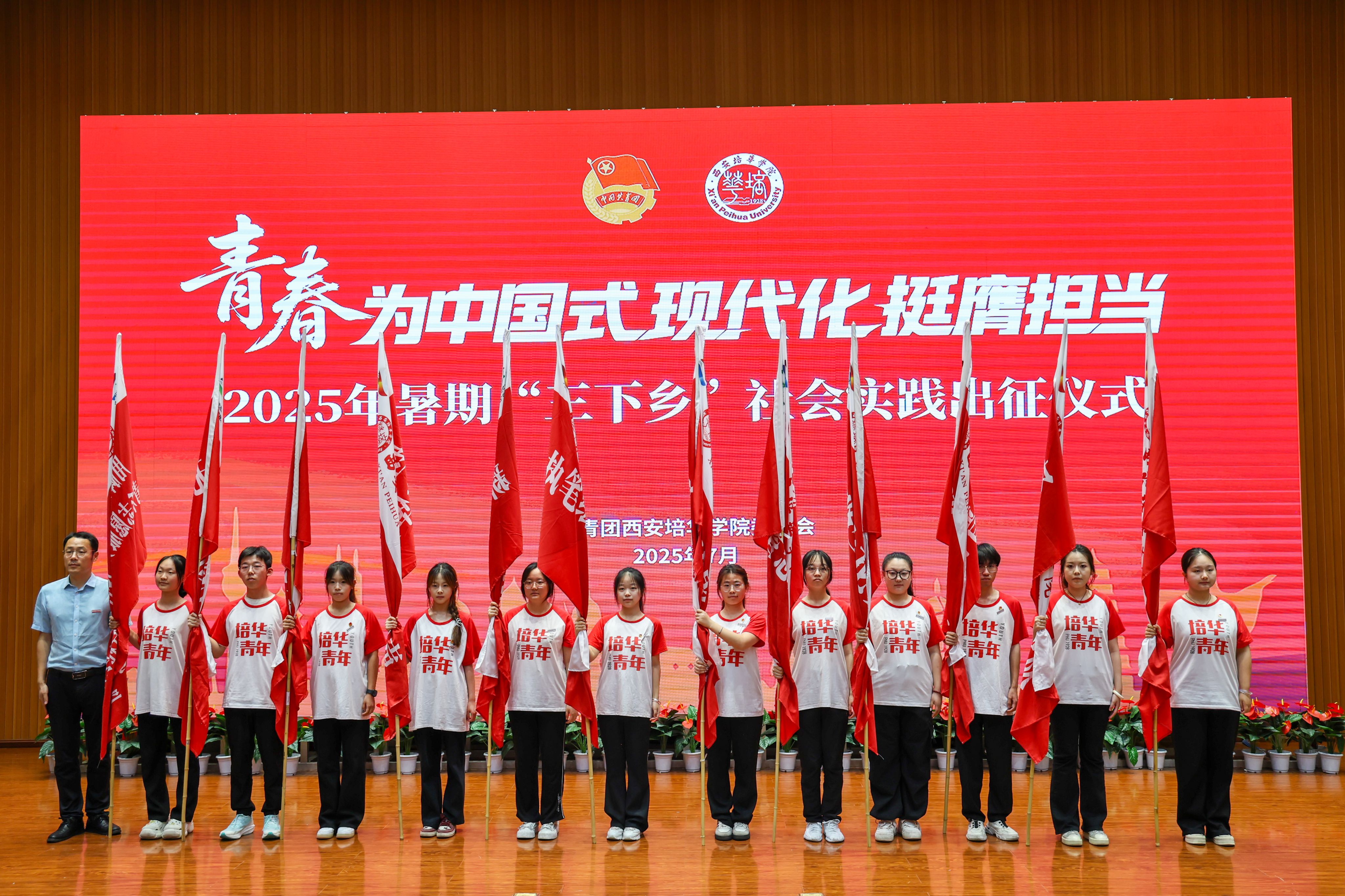 7月1日,西安培华学院2025年暑期“三下乡”社会实践出征仪式在图书馆报告厅举行,西安市青年志愿者行动指导中心主任赵娟,西安市灞桥区团委书记吴彬彬,学校党委书记刘锋,党委副书记、副校长姚文静,党委副书记蔡亮以及各院(部)、中心相关领导,校级立项团队指导老师代表,实践团队代表等400余师生齐聚一堂,共赴实践之约。