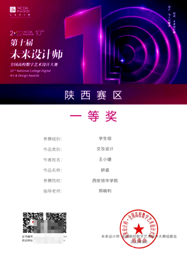 学生参加全国高校数字艺术设计大赛获陕西赛区一等奖