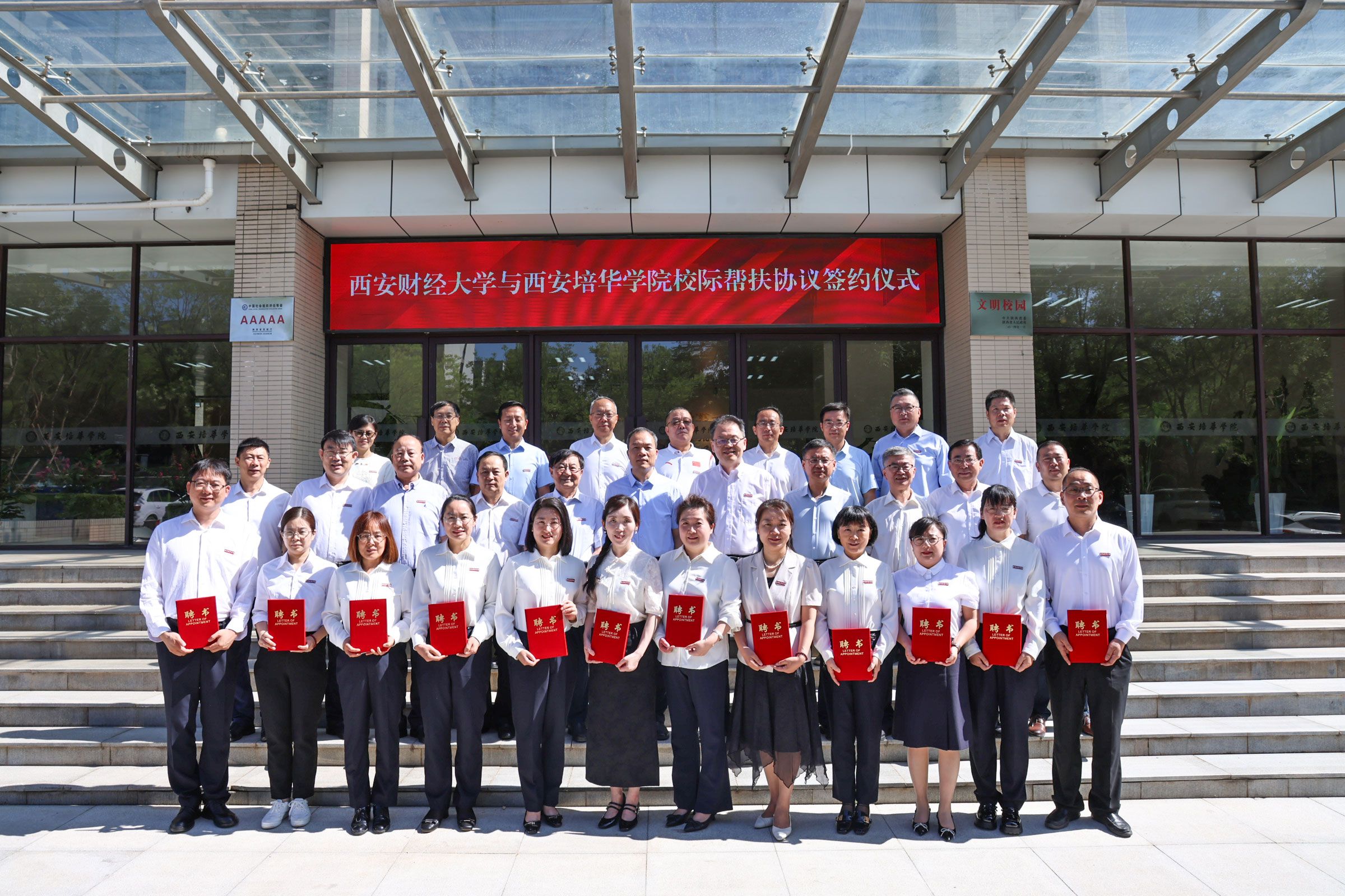 西安财经大学副校长史卫民、西安培华学院副校长罗新远代表双方签署了《西安财经大学与西安培华学院校际帮扶协议》《联合培养硕士研究生协议》。
