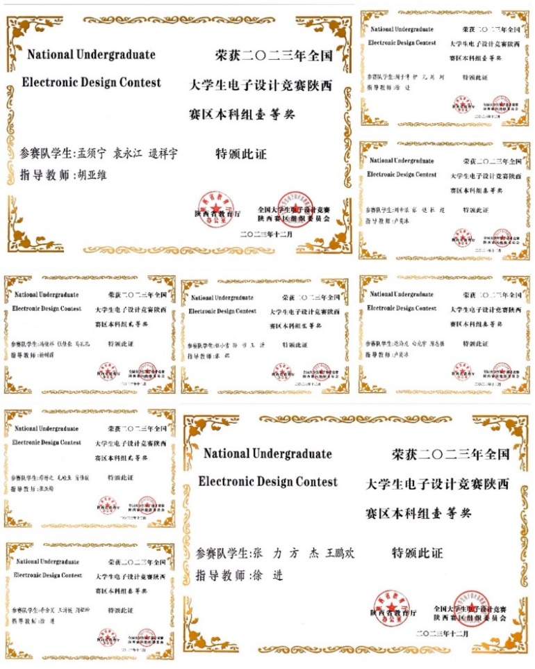 全国大学生电子设计竞赛部分获奖证书