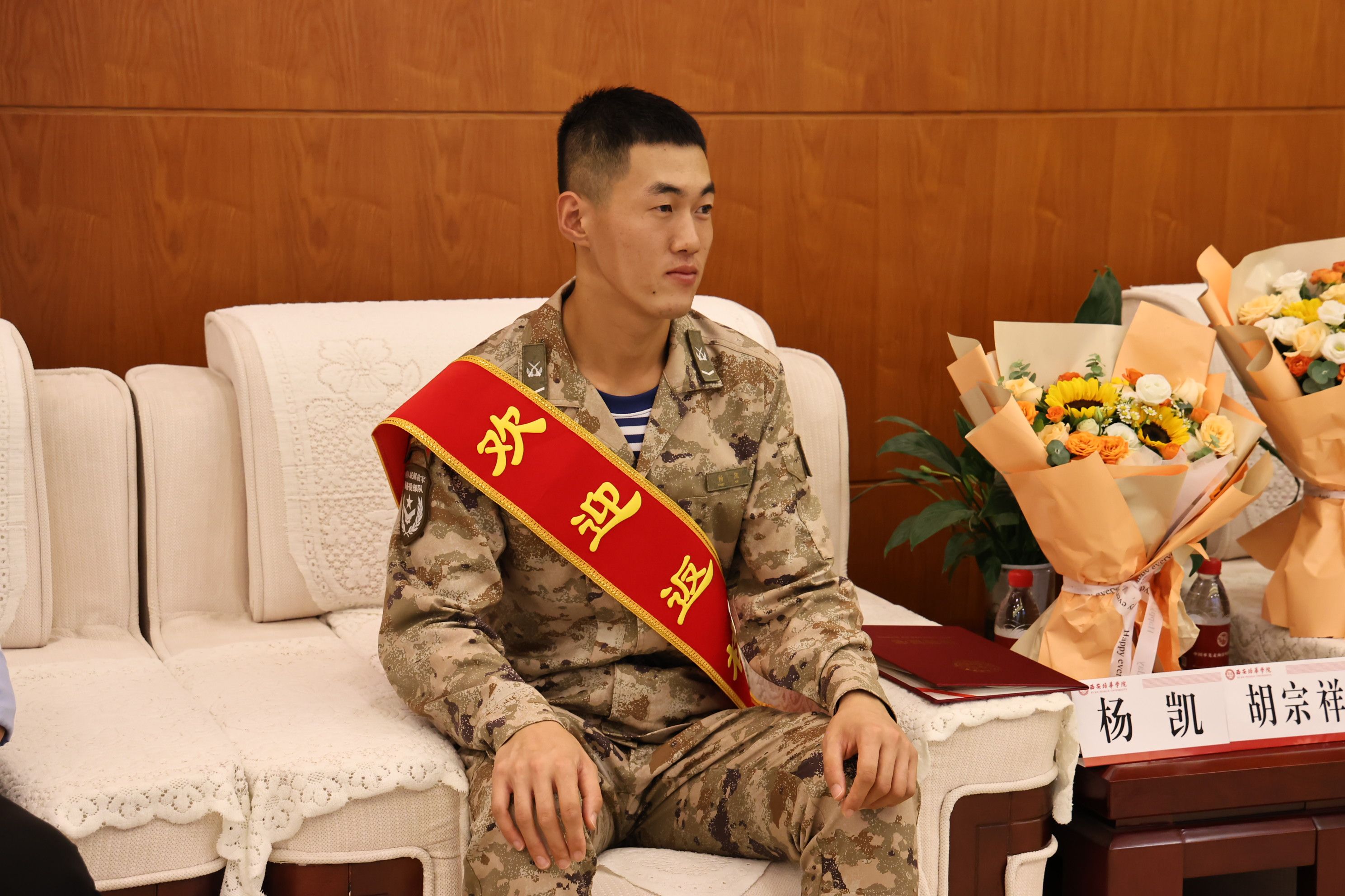 初秋的培华校园丹桂飘香、阵阵秋雨送来丝丝凉爽。9月11日清晨,西安培华学院校园内电子屏“热烈欢迎杨凯、胡宗祥参加九三阅兵凯旋归来”格外耀眼。刚刚参加完“九三阅兵”的2022届校友杨凯、2024届校友胡宗祥身着笔挺戎装返回母校,与师长和学弟学妹分享成长经历。