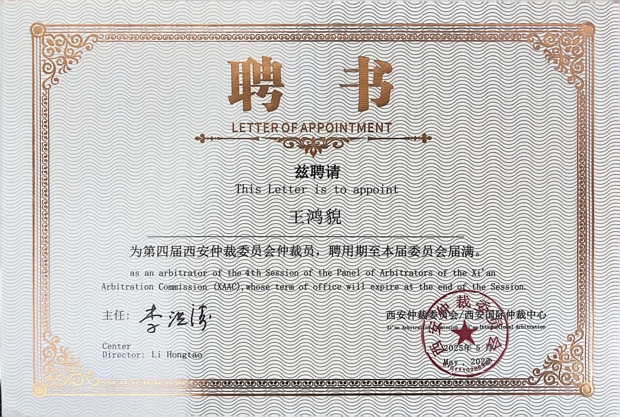 近日,西安仲裁委员会第四届仲裁员聘任大会在西安举行。经严格遴选,西安培华学院法学院院长王鸿貌教授成功续聘为仲裁员,聘期与本届仲裁委员会同步。