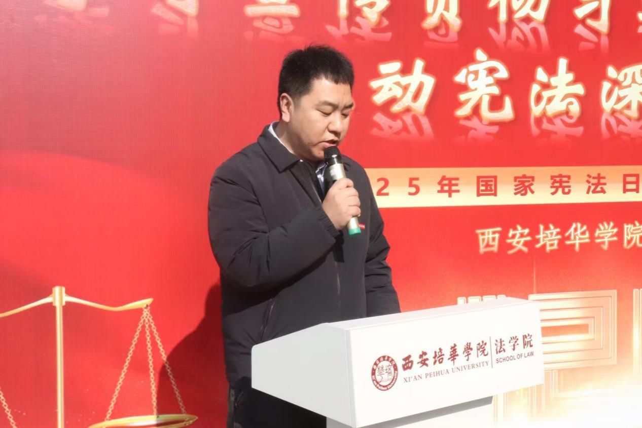 12月4日,西安培华学院法学院学生第二党支部与上海段和段(西安)律师事务所第二党支部联合举办“弘扬宪法精神护航法治中国”主题党建联建活动。双方领导及律师代表、学院教师出席,活动由学生第二党支部书记关鑫主持。活动中,法学院党总支书记兼行政副院长韩斌强调宪法教育在法学人才培养中的核心地位,提出通过支部共建、实务交流深化法学理论与司法实践融合;副院长赵洁介绍学院育人理念及合作展望,鼓励学生向优秀法律从业者学习。