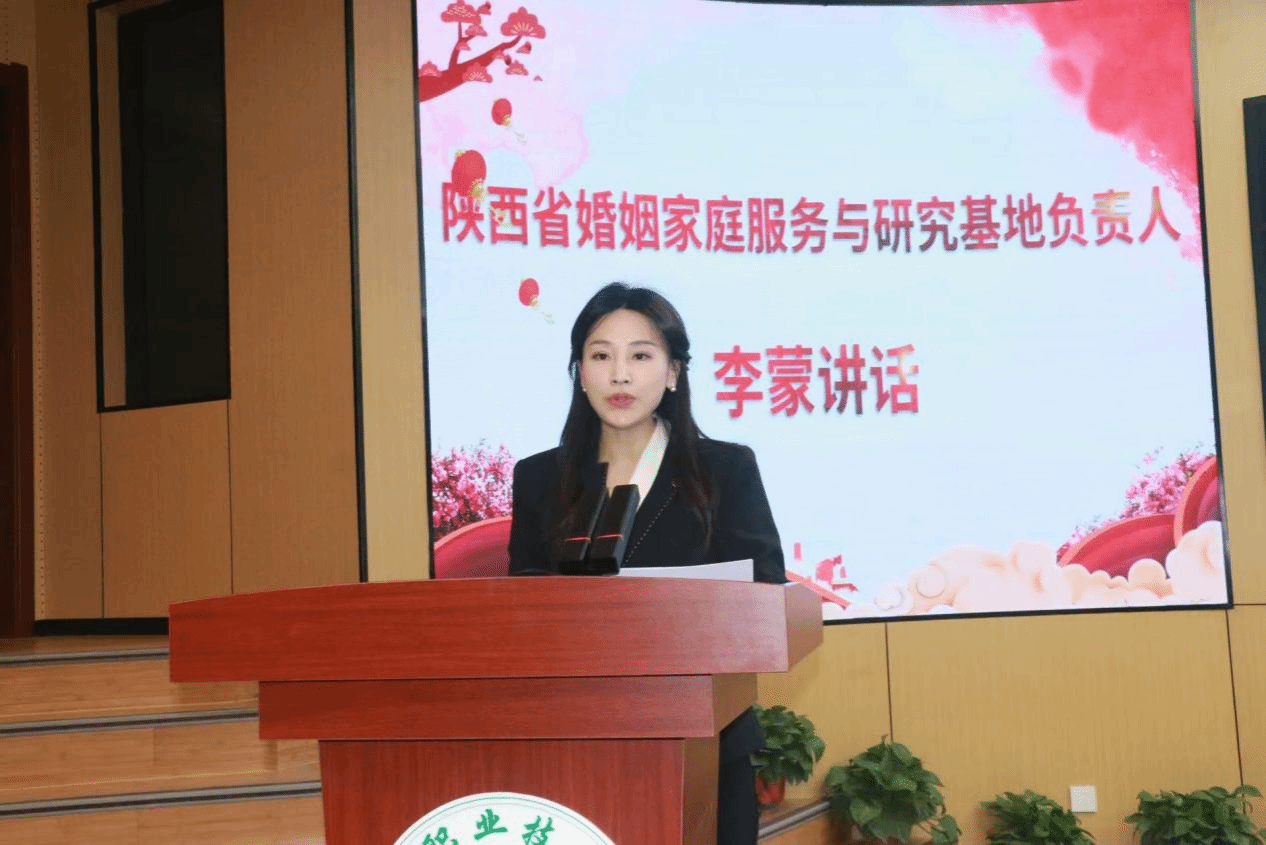 西安培华学院女子学院副院长李蒙代表陕西省婚姻家庭服务与研究基地讲话。她深刻阐述了新时代背景下树立正确婚恋观、加强家庭建设的重大意义,表示这是响应党的二十大号召、筑牢社会和谐基石的关键举措。她详细介绍了基地在构建“四位一体”发展格局、打造系统化工作体系方面取得的成效,特别是通过“新时代家庭观进高校示范院校联盟”将理论研究成果转化为服务青年、服务社会的生动实践。