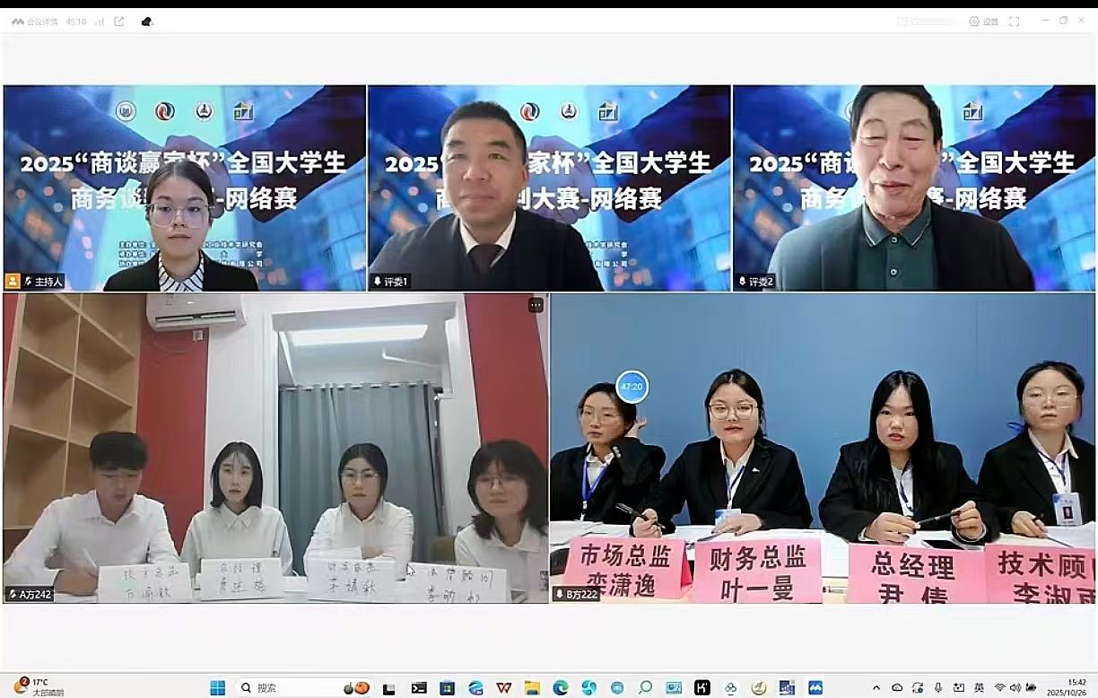 总决赛现场,面对强劲对手,团队沉着冷静、配合默契,灵活运用专业知识与谈判技巧,在多轮磋商中展现出清晰的谈判逻辑、严谨的思维表达、突出的临场应变能力及团队协作水平,获评委高度评价,充分彰显了学校金融工程专业“以赛促学、以赛促练”的育人成效。