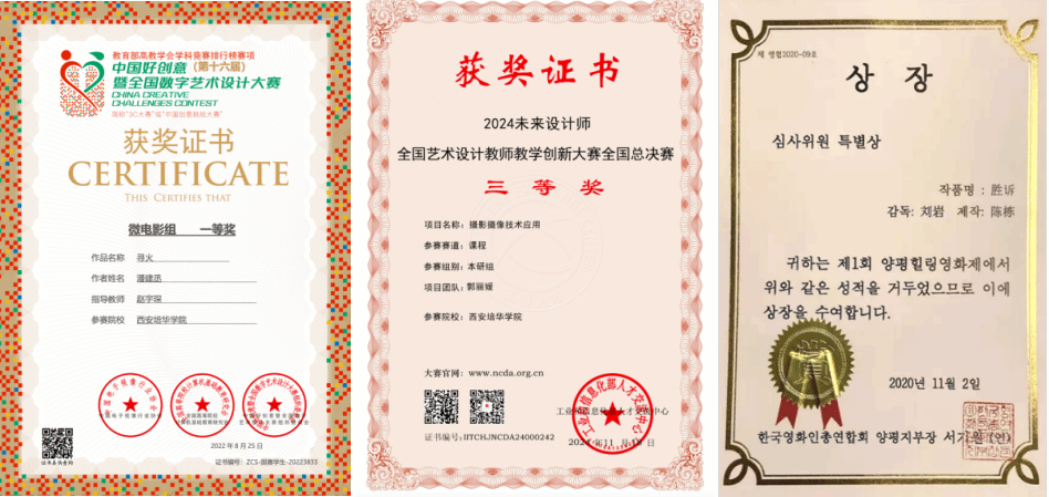 近年来,专业在人才培养与教学成果上成绩显著。学生作品入围平遥国际摄影展、陕西省首届创意more短视频大赛,在深圳微电影节、海峡两岸微电影大赛、陕西省大学生摄影大赛、新丝路青年摄影大赛、城市镜像大学生短视频创作大赛等国家级、省市级赛事中频频获奖,优秀作品更在国际电影节崭露头角,生动诠释技术赋能与艺术创作的深度融合。这些成果既是“数字技术+艺术创作”教学体系的可视化呈现,也彰显了专业在培养“懂技术、会叙事、能创新”的复合式影像人才方面的显著成效。
