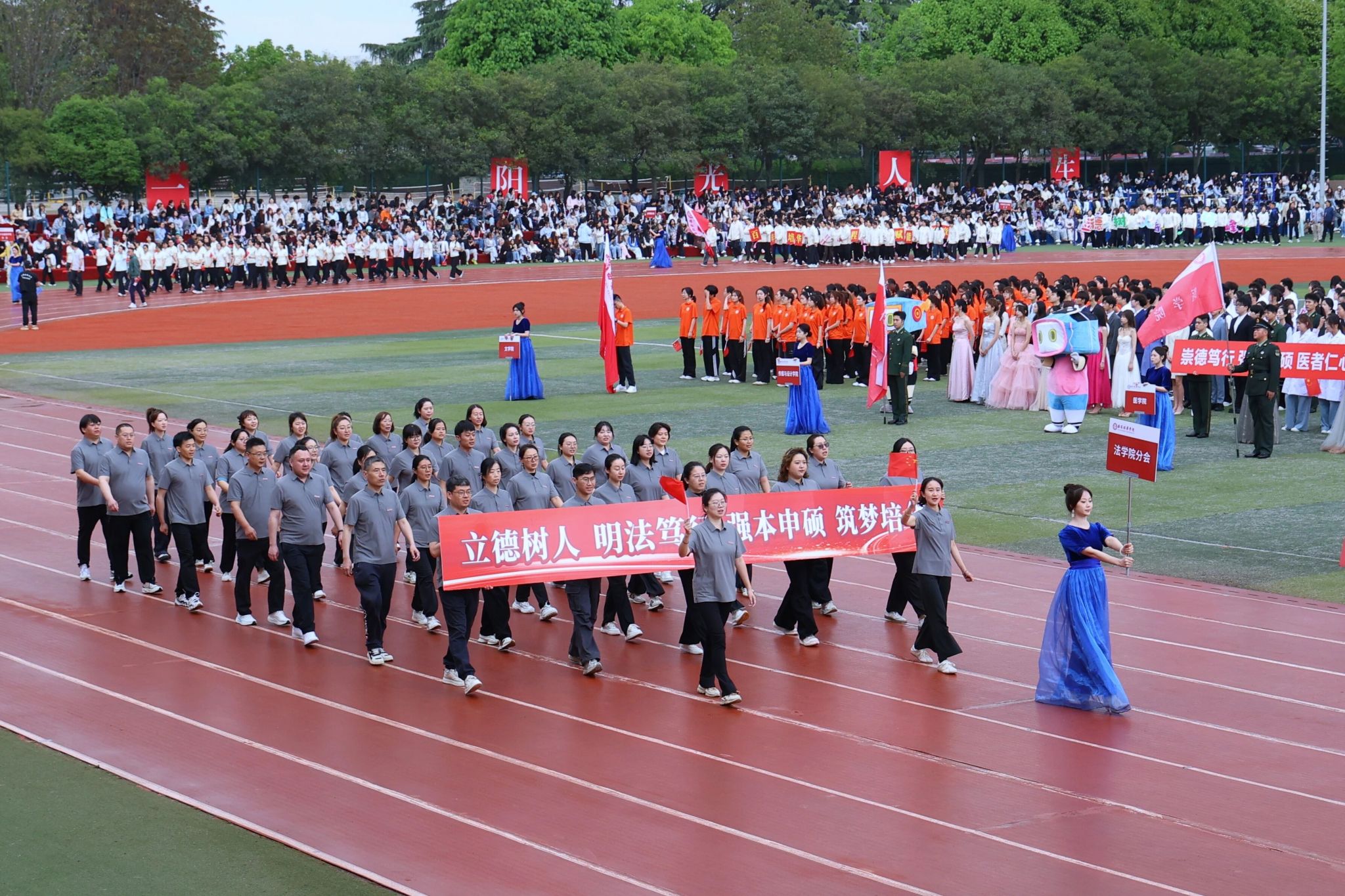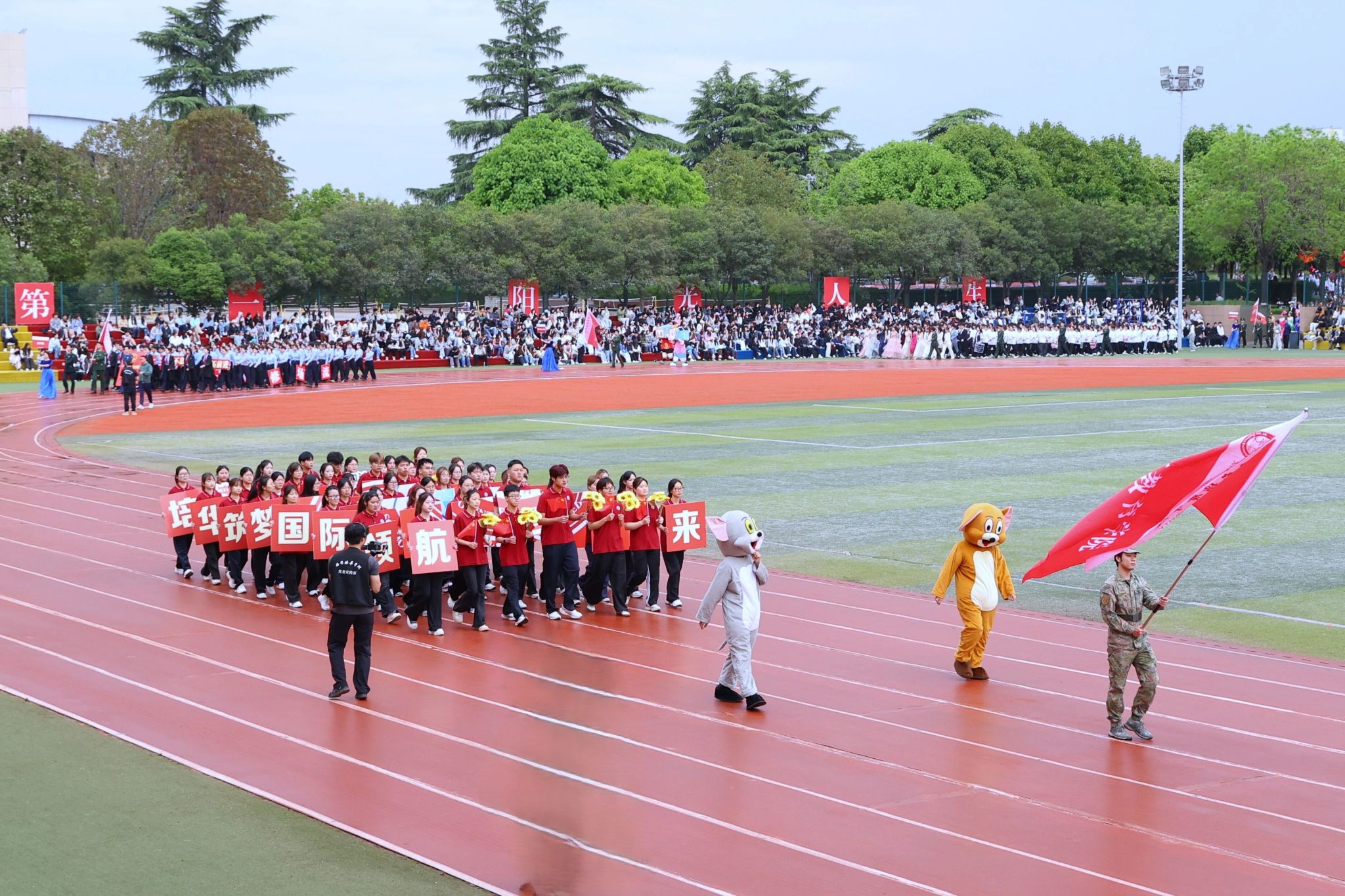 平日深耕科研、手握粉笔的老师们换上运动装,从各自岗位聚成昂扬队伍,步伐整齐、神采飞扬。他们不仅是知识领路人,更是赛场追风榜样——赛场上超越自我、赛出风格,赛场下是“强本申硕”征程中最坚实力量,赢得全场热烈掌声。