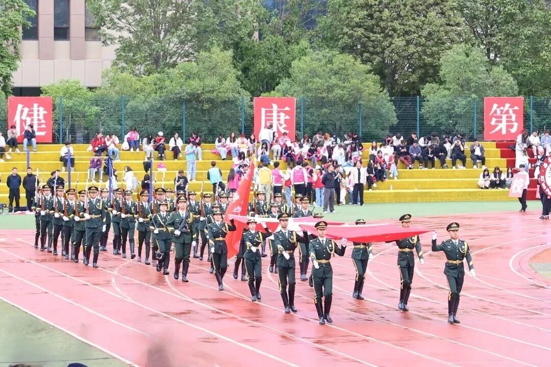 开幕式由副校长、党委副书记姚文静主持。国旗护卫队率先登场,铿锵步伐如雷贯耳,挺拔身姿如松而立,护卫五星红旗拉开盛会庄严序幕。校徽方阵紧随其后,“校誉至上,质量第一;自强不息,开拓前进”的校训激励着一代代培华学子奋勇争先。裁判员方阵以每一次鸣哨、举旗承载着对运动的热爱与责任,成为赛场“定海神针”,守护规则尊严。